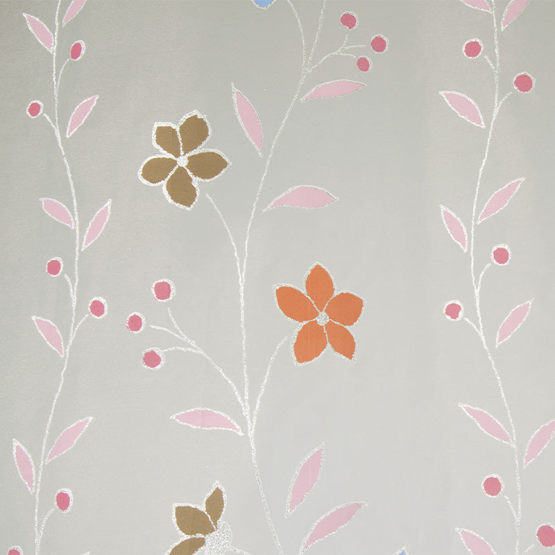 Tela para cortinas de organza con acabado en tirantes, ideal para usar con barra. Diseño floral simple hecho especial por un acabado de Brillantina.